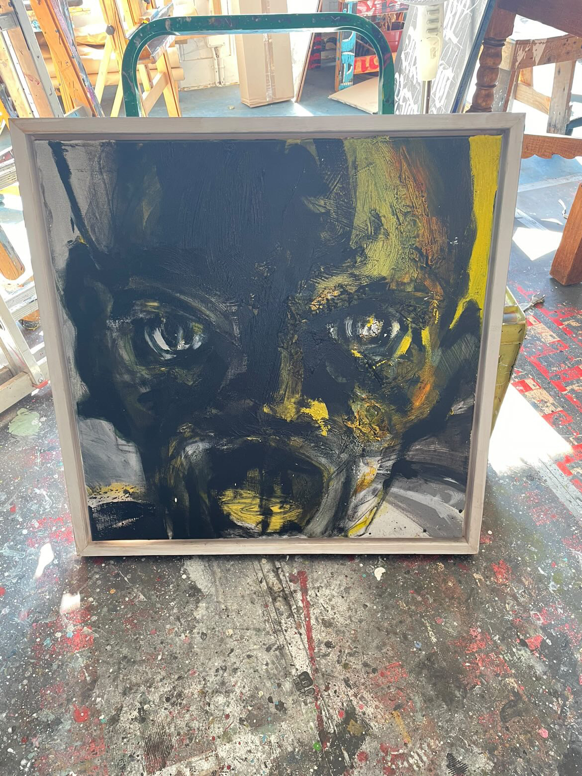 In creating “Untitled,” RakeStreken tapped into the serenity and reflection found during the retreat. The process involved vigorous, expressive brushstrokes and the application of heavy impasto techniques, which add physical presence and depth to the artwork. The face, though abstract, captures the essence of human emotion—intense, immediate, and deeply felt.